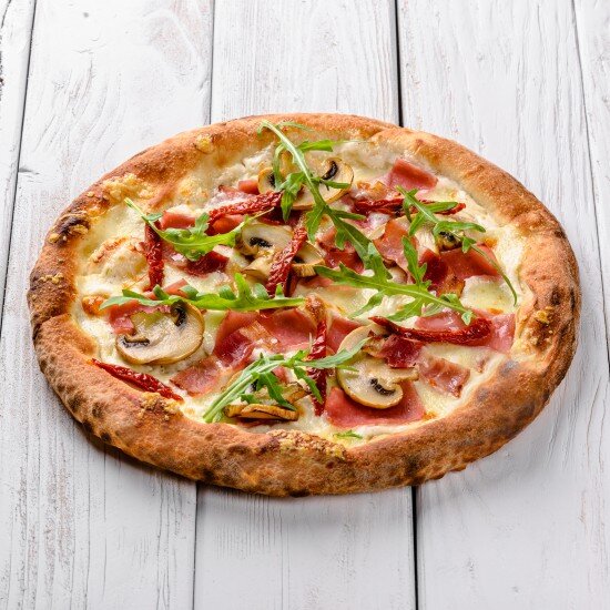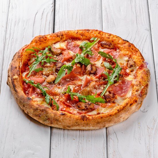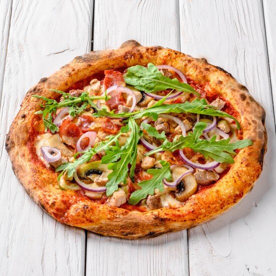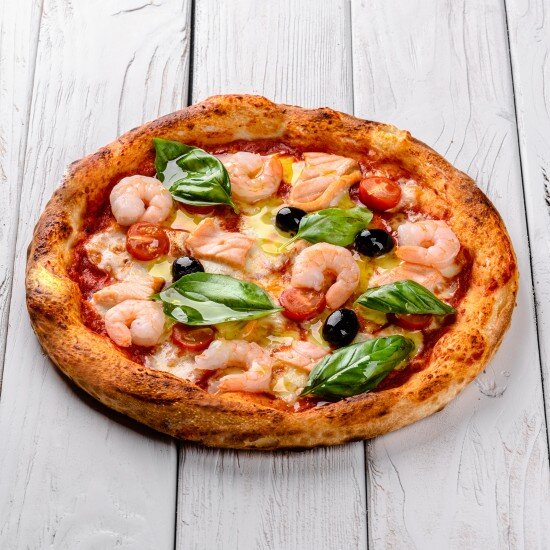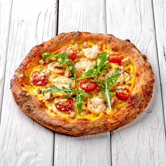 Соус ранч, сыр моцарелла, мидии, кальмары, креветки, осьминоги, салат рукола